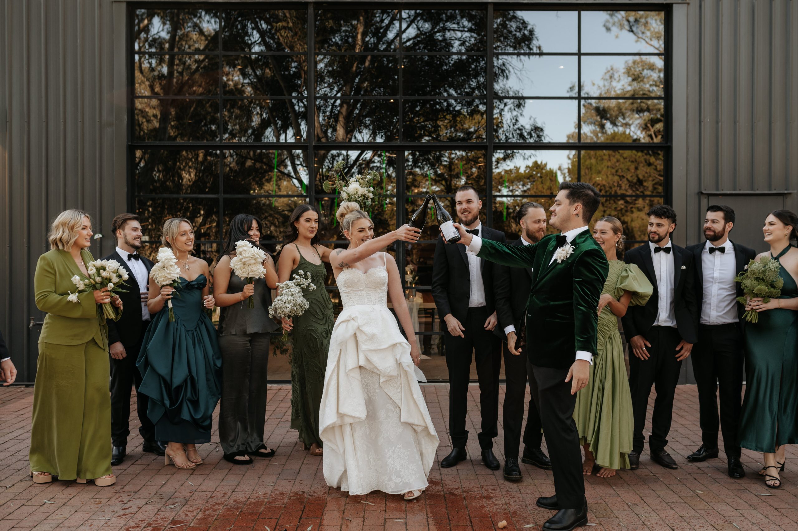 The incredible, Peter Lehmann Wines hosted this classy black tie wedding. Green was the theme for the the girls and Georgie's bridesmaids and Bridesman smashed this one out the park. Turner took pride of place with his super classy Green crushed velvet tuxedo jacket and his entourage of groomsmen looked on point with their all black tuxedos. The day was full of emotions and then everyone partied the night away to some super cool disco tunes. Believe me, Photography is easy when everything looks this good.
